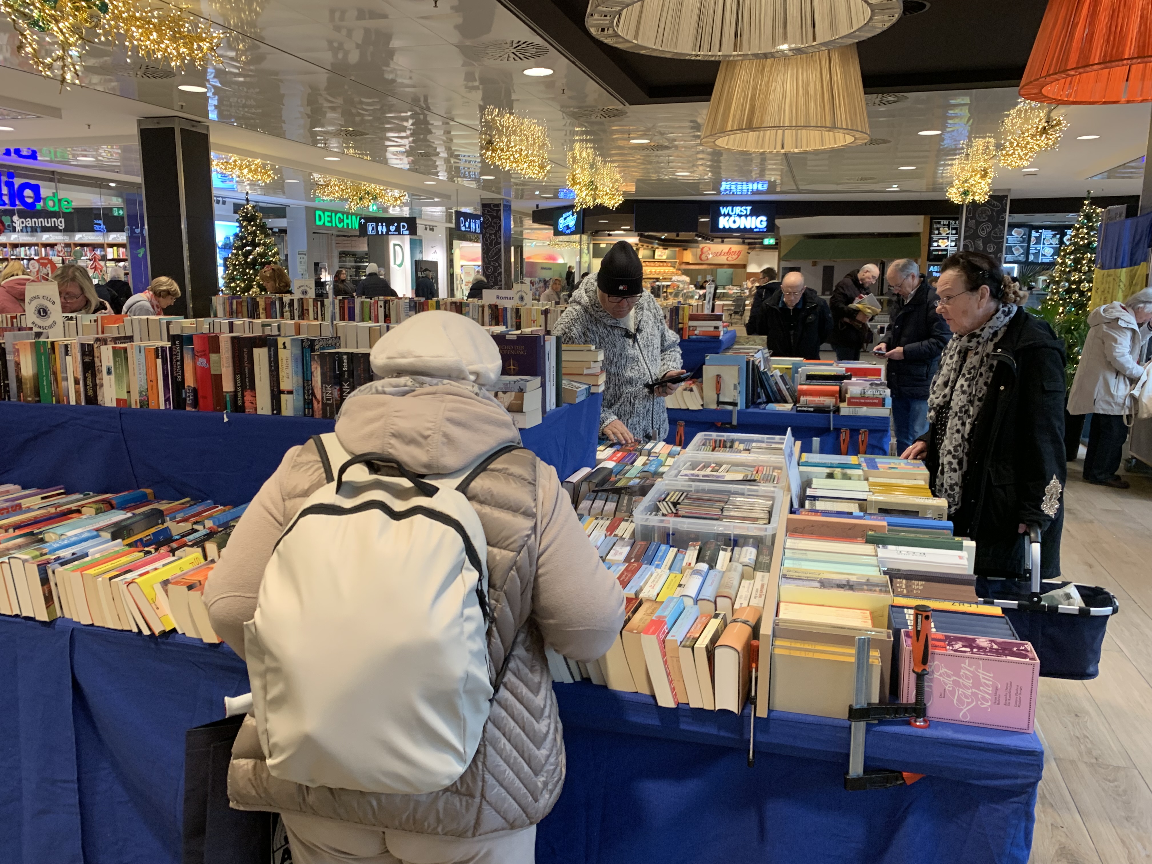 Das tagelange Gerödel vor, bei und nach dem Bücher- und Schallplattenmarkt 2025 im Allee-Center hat seinen Zweck erfüllt. Der Erlös: mehr als 15.000 Euro, die der Lions Club Remscheid für soziale Zwecke ausschütten wird. Unter logistischer und organisatorischer Führung des Bücherbeauftragten Hermann Uppenkamm waren viele Lions und Angehörige, Pfadfinder, Lütteraten und in Remscheid lebende ukrainische Familien (aktiviert von Lionsfreund Illia Gubin und Gattin Marina Samsara) sowie die Damen von Inner Wheel tatkräftig im Einsatz.